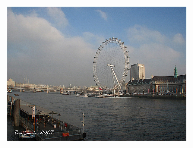 英國人真是有夠愛摩天輪. 這個London Eye 光是材料就花了七年生產, 然後將它們運到Thames河上進行組裝. 許多電影都喜歡來這裡拍攝. 例如驚奇四超人第二集裡, Fantastic 4他們四個人就在這裡拉住了摩天輪, 防止它倒下...