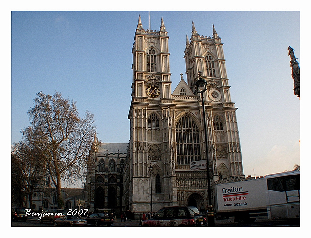 在Palace of Westminster附近的是西敏寺 (Westminster Abbey), 與Palace of Westminster一樣是哥德風格建築. 它在英格蘭有個非常重要的地位, 因為通常就是在這裡, 英格蘭教會加冕新的國王或女王, 並舉辦登基典禮.
