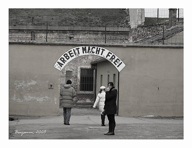 統計上大約有15萬猶太人被運到這裡工作, 大約有將近5萬死在這裡. 這裡著名的Slogan就是:"Arbeit macht Frei"(工作讓你自由). 事實上猶太人只被當作畜牲不如的生產工具, 幾乎不停的工作, 而給他們的食物卻只有一般人的1/10. 德國納粹變態的程度由此可見.