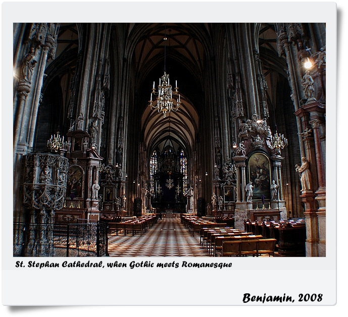 主架構是羅曼式(Romanesque)風格, 從它的強而厚實的石柱與牆壁就可看的出來.