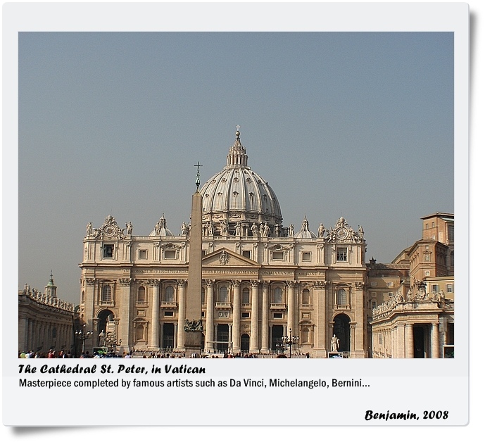這座教堂之所以偉大, 是因為參予它的建造的人, 大多數都是在藝術或是建築史上頂頂有名的大人物, 例如達文西(Da Vinci), 米克蘭基羅(Michelangelo), 貝尼尼(Bernini)...等. 其中又以米克蘭基羅最享盛名, 而貝尼尼最具爭議性.