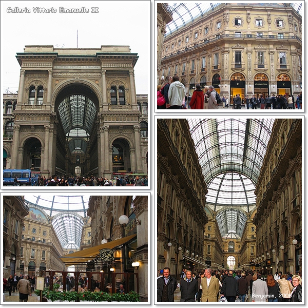Galleria Vittorio Emanuelle II位於Duomo廣場, 是米蘭著名的地標之一. 天花板都是以鐵架與玻璃建造的, 內部的商店都是像LV或Gucci等的知名品牌.
