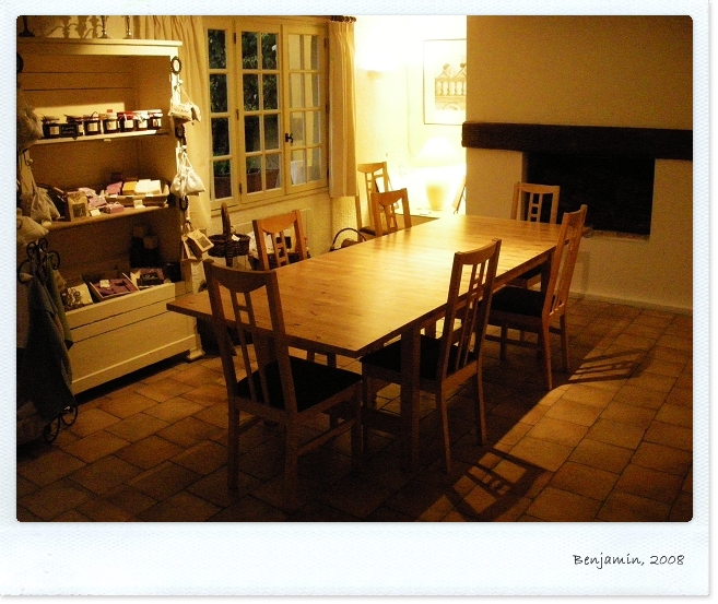 剛到的第一個晚上, 就與Guillaume聊了蠻久. 他提到他開民宿的理念, 感覺起來就是個非常堅持並且有想法的人. 也聊到法國的狀況, 法國人真的蠻多人都討厭Sarkozy的. 我也藉這機會跟Guillaume解釋了台灣的歷史(與中國大陸之間的恩怨往來). 整個過程聊的真的很愉快, 最後甚至還講到這次的世界經濟蕭條, 簡直就是聊過了一整個地球. 我感到很高興的地方是, 在跟他隨便亂聊的過程, 我發現我的法文流利度又恢復了高中時期的水準, 語言果然就是要常講, 有一段時間不講就很容易生疏.