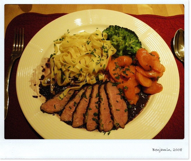 主菜: 紅酒醬烤鴨配上Pasta與蔬菜