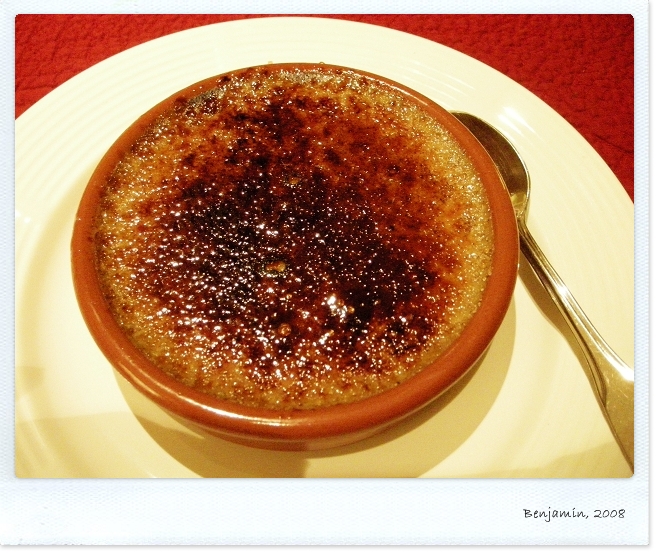 甜點是烤布丁(Creme brulee), 典型的法國甜點.