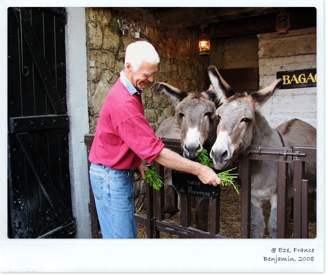 艾茲村的普羅旺斯驢, 塊頭超大. 他們的飼主老爺爺也很熱心的對我們講解.