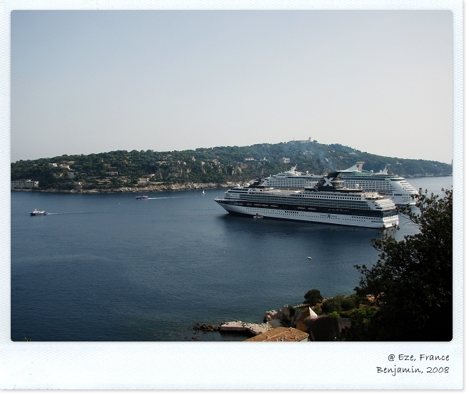 往海上看過去可以發現豪華郵輪, 正在這裡做短暫的停留.