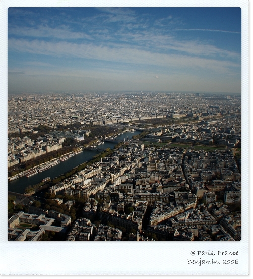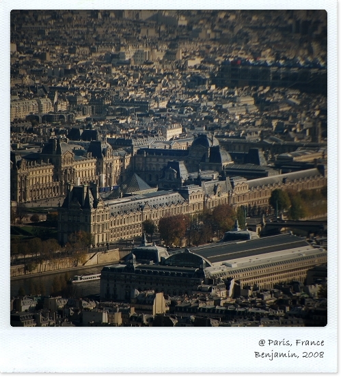 沿著塞納河 (La Seine), 巴黎看起來非常狀觀. 仔細看更是可以看到香榭大道, 杜勒麗宮, 等著名的景點: