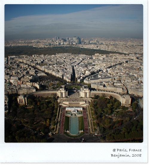 法國巴黎 (Paris)的象徵建築當然就是艾菲爾鐵塔 (La Tour Eiffel). 最適合照艾菲爾鐵塔其中之一的地點就是在夏瑤宮 (Palais de Chaillot), 也稱作 Trocadero. 從這裡望過去可以看到艾菲爾鐵塔, 前方的塞納河 (La Seine)與後方的整個戰神廣場 (Champs de Mars), 非常壯觀. 但是與巴黎其他觀光景點一樣都有一個缺點, 就是非洲人很多, 大部分都是要騙觀光客的錢.