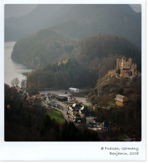 Ludwig二世是個非常熱愛華格納歌劇與天鵝的怪異國王. 他出生在他老爸建造的高天鵝堡 (Hohenschwangau)裡. 高天鵝堡是個風景優美, 位於湖畔與森林中間的美麗城堡. 下面的照片就是高天鵝堡與湖畔.