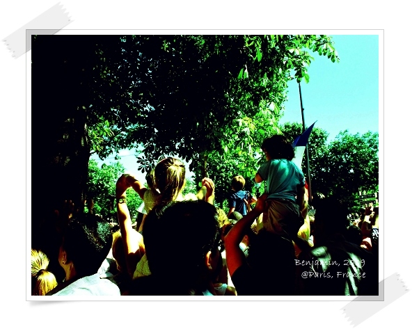 還好法國人身高在歐洲算偏矮, 讓我在遠方也能望到遊行.