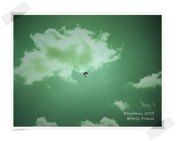 他們掛著法國國旗的降落傘, 一共將近6個人.