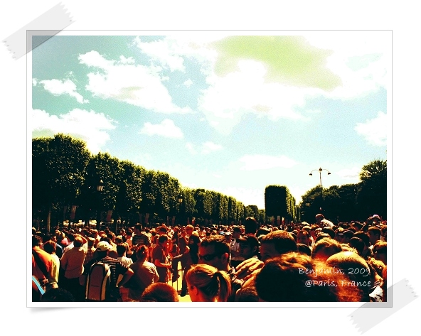 人群從協和廣場, 迴繞著香榭大道, 一直到凱旋門.